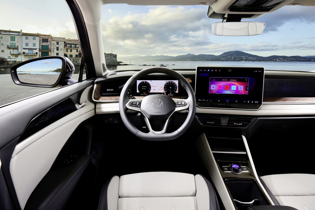 Le Nouveau Tayron propose un grand espace et peut accueillir confortablement tous les passagers.Ce grand SUV se distingue par des matériaux haut de gamme avec la présence de grandes surfaces ArtVelours au niveau du tableau de bord et des inserts de porte sur la finition R-Line. De nombreux équipements de série sont proposés tels que le volant multifonction ou les garnitures de porte de la couleur extérieure.