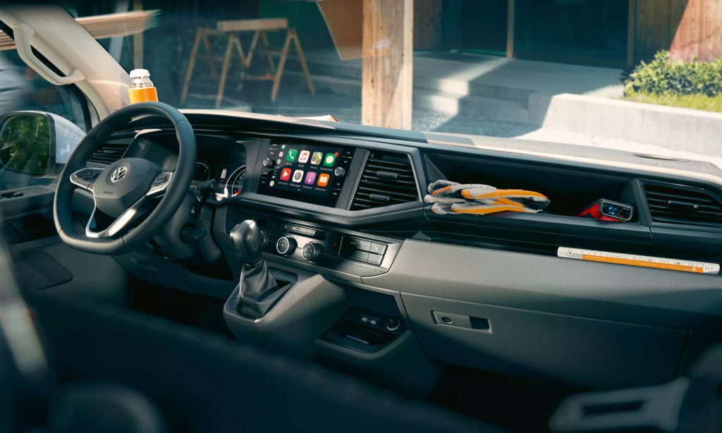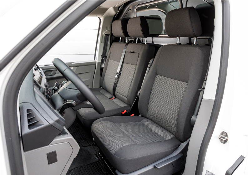 Chaque jour, vous faites attention à ce que le matériel et toute votre équipe arrivent en toute sécurité à destination. C’est pourquoi le Transporter 6.1 veille aussi à votre confort. Son poste de conduite ergonomique, son volant réglable en continu, ainsi que le siège conducteur avec la garniture confort à mémoire de forme, et un nouveau tableau de bord vous assurent des trajets aussi détendus que possible. Grâce à une vue panoramique exceptionnelle, vous êtes en sécurité dans les centres-villes étroits ou sur les chantiers encombrés. Et lorsque vous êtes stationné, votre poste de conduite se transforme facilement en poste de travail.